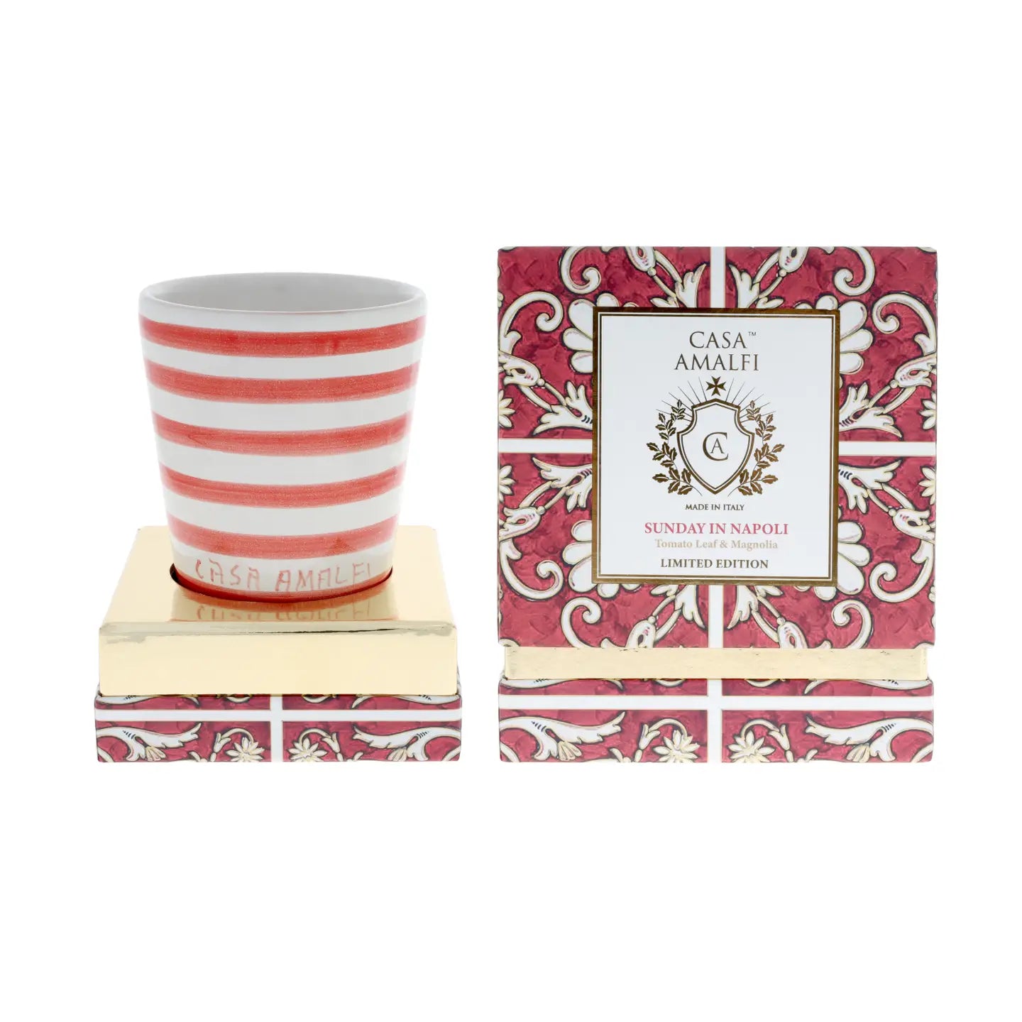 Immerse yourself in the allure of this intense and passionate fragrance that captures the very essence of Naples. Like a sun-drenched afternoon in a lush Italian garden, the scent of Tomato Leaf & Magnolia transports you to the moment just before the vines burst forth with their bountiful fruit, releasing a symphony of green notes. Hand painted by artisans in Amalfi, this soy wax candle is a testament to the heritage and craftsmanship of this culturally rich region.